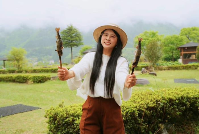 最後一天,自己動手捕魚,烤魚,還有日本的流水素面,我覺得過程特別好玩,麵條在竹筒裡隨流而下,大家圍在竹筒兩邊,用筷子夾面,很有氛圍感。