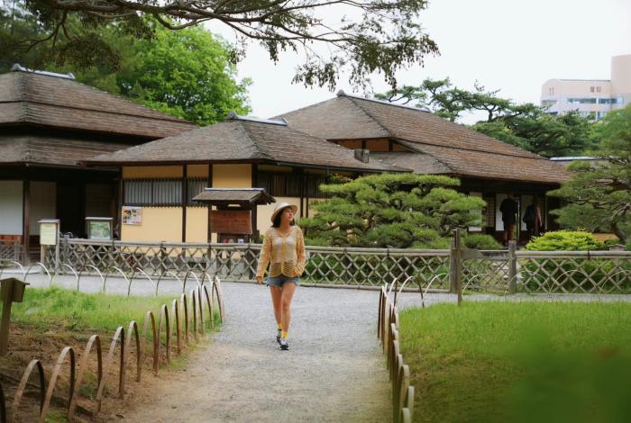 慄林公園歷史悠久,起源於日本江戶時代,是代表性的日本園林建築,這裡的飛來峰是最佳攝影點,還有一個掬月亭,可以品茶。